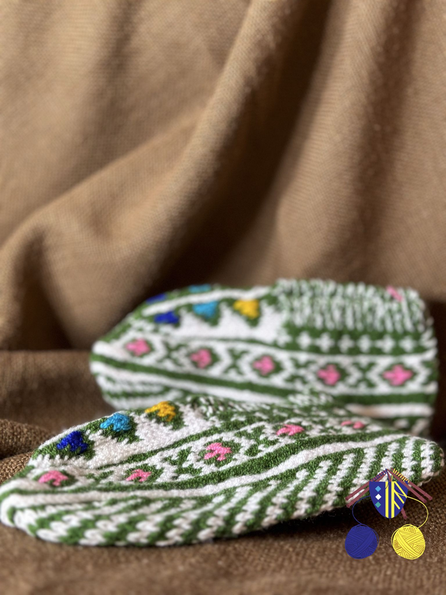Traditionelle iranische Stricksocken in Weiß/Grün – handgefertigt ohne Nähte.